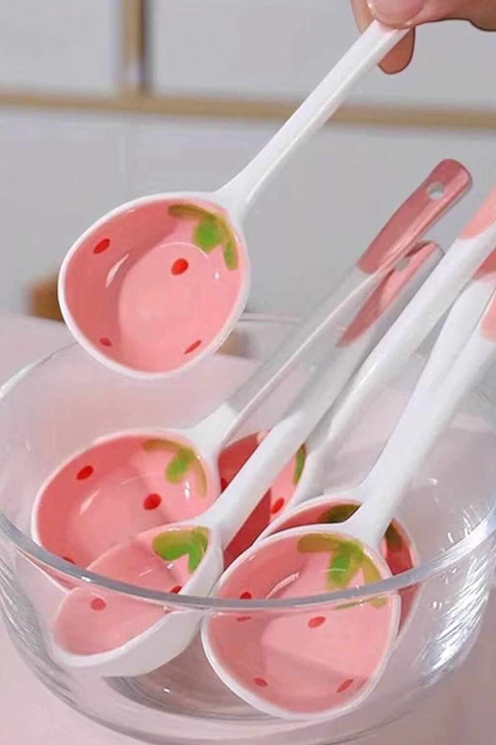 These hand-painted strawberry ceramic spoons are the perfect companion for stirring tea, drizzling honey, or scooping jam. The long handle keeps your fingers clean while reaching comfortably into mugs, jars, and teacups, and the glossy ceramic finish makes them as charming as they are practical.