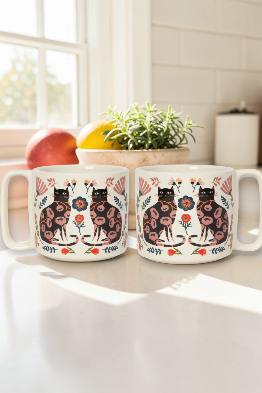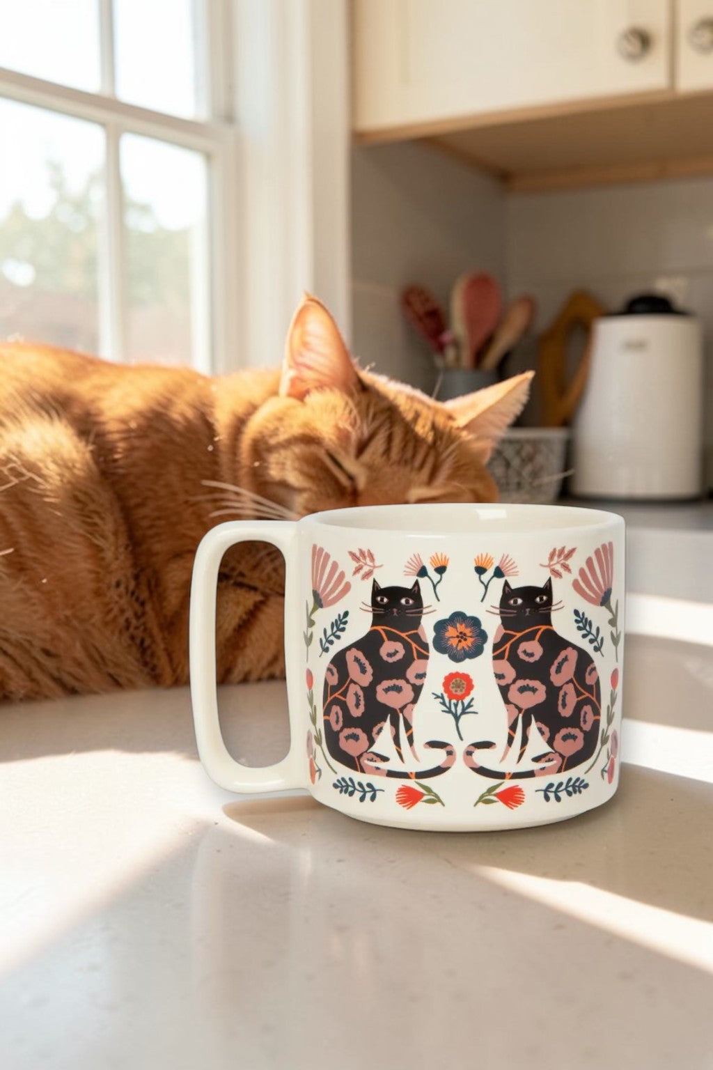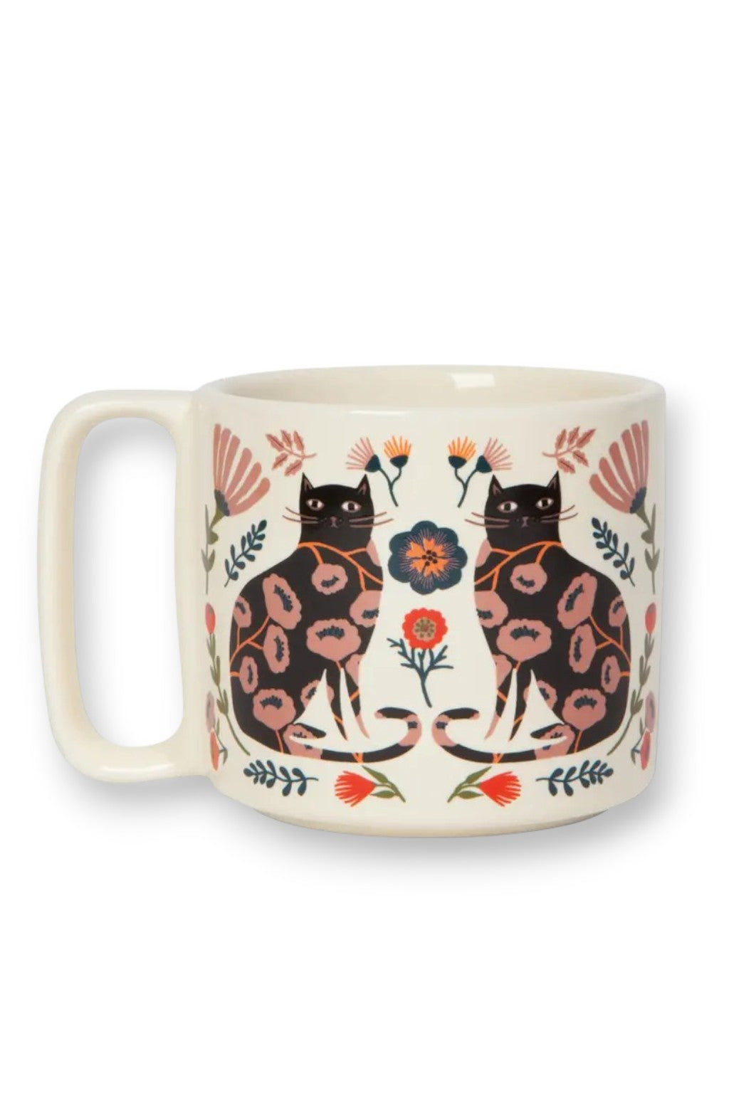 Catbloom Midi Studio Mug – 11 oz Stoneware Floral Cat Mug, Dishwasher & Microwave Safe