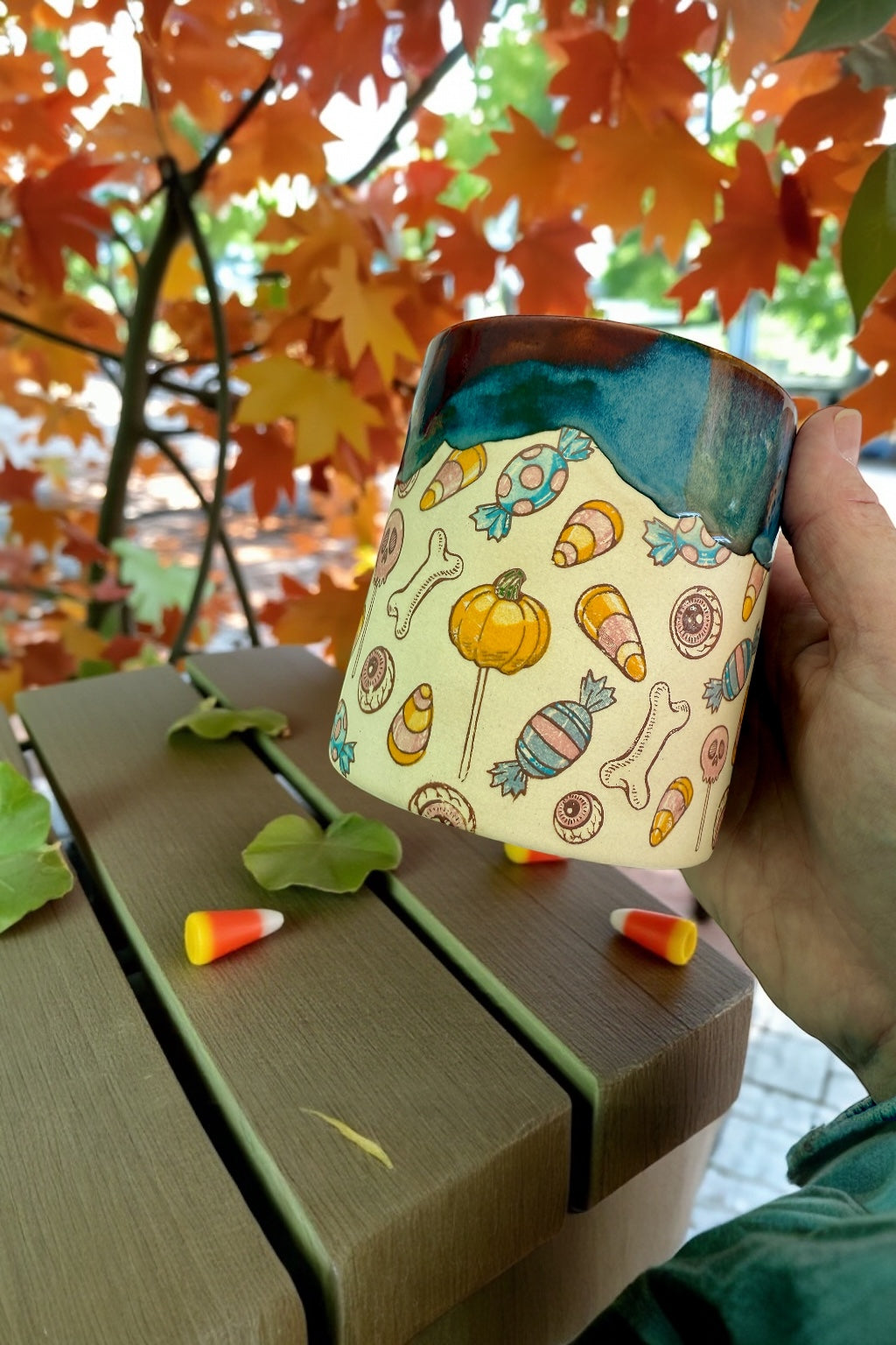 Each set features our Maple Pumpkin Spice Herbal Tea, a warming rooibos blend with real pumpkin, maple syrup, cinnamon, nutmeg, ginger, and turmeric — perfectly paired with a handcrafted ceramic mug from Asheville artist The Botany Garage. Every mug is one-of-a-kind, featuring whimsical fall-inspired designs and a dreamy glaze that makes each cup of tea feel like a little work of art.