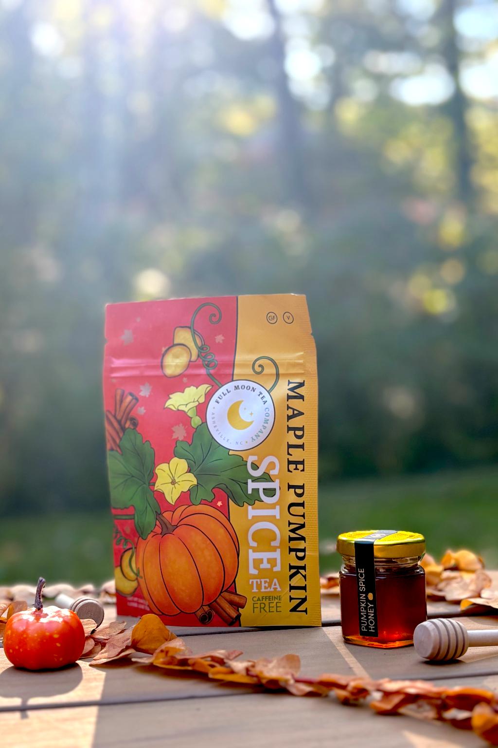 Maple Pumpkin Spice Tea & Pumpkin Spice Honey Gift Box | Cozy Fall Tea Set by Full Moon Tea Co. x Spice Witch