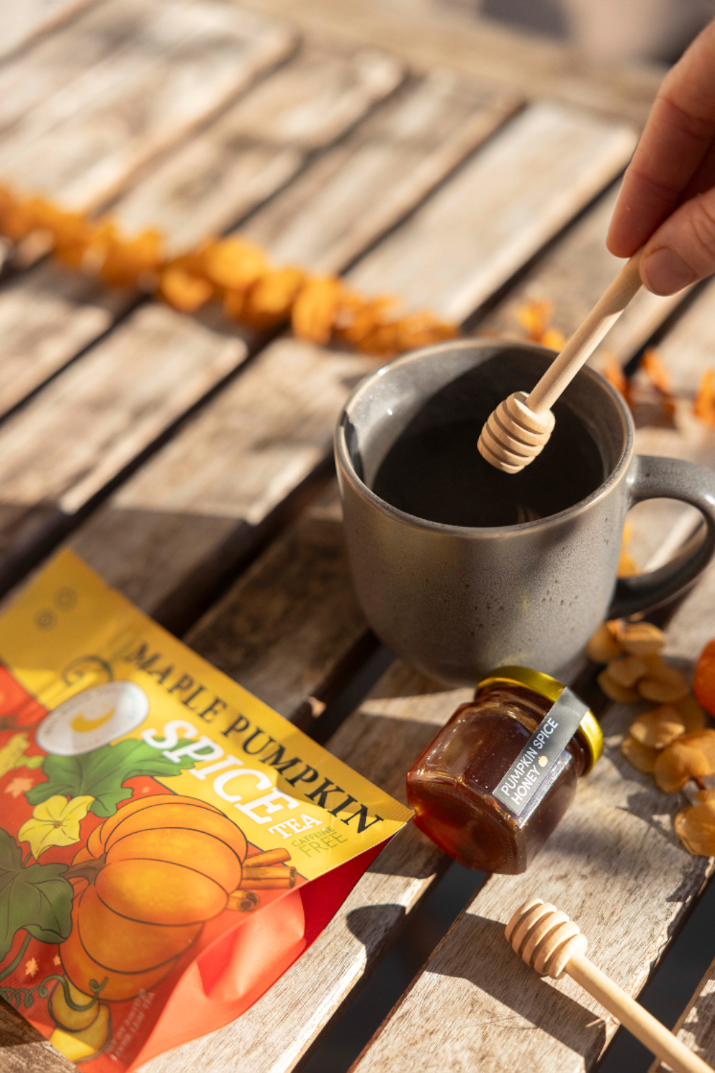Each set pairs our Maple Pumpkin Spice Herbal Tea (rooibos, pumpkin, granulated maple syrup, cinnamon, nutmeg, ginger, and turmeric) with Spice Witchβs Pumpkin Spice Honey, a small-batch blend infused with warming spices. Together, they make the perfect fall ritual β sweet, spiced, and full of comfort.